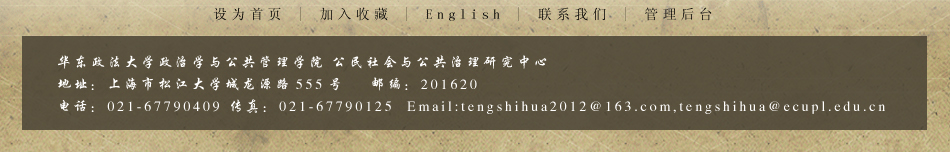 华东政法大学365bet比分成立于2012年10月。365bet比分根植于社会多重转型的现实背景,致力于公民社会的理论与实证研究,加强国内外学术交流与合作,推动公共管理的学科发展与学术进步;向社会传播公共领域的价值与精神,密切与非政府组织的交流与合作,促进公民社会的发育与完善;为政府提供智力支持和决策参考,通过社会管理的持续创新,不断提高社会的组织化、民主化、现代化水平,探索在全球化进程中实现公共治理与善治的中国道路。...详情>>